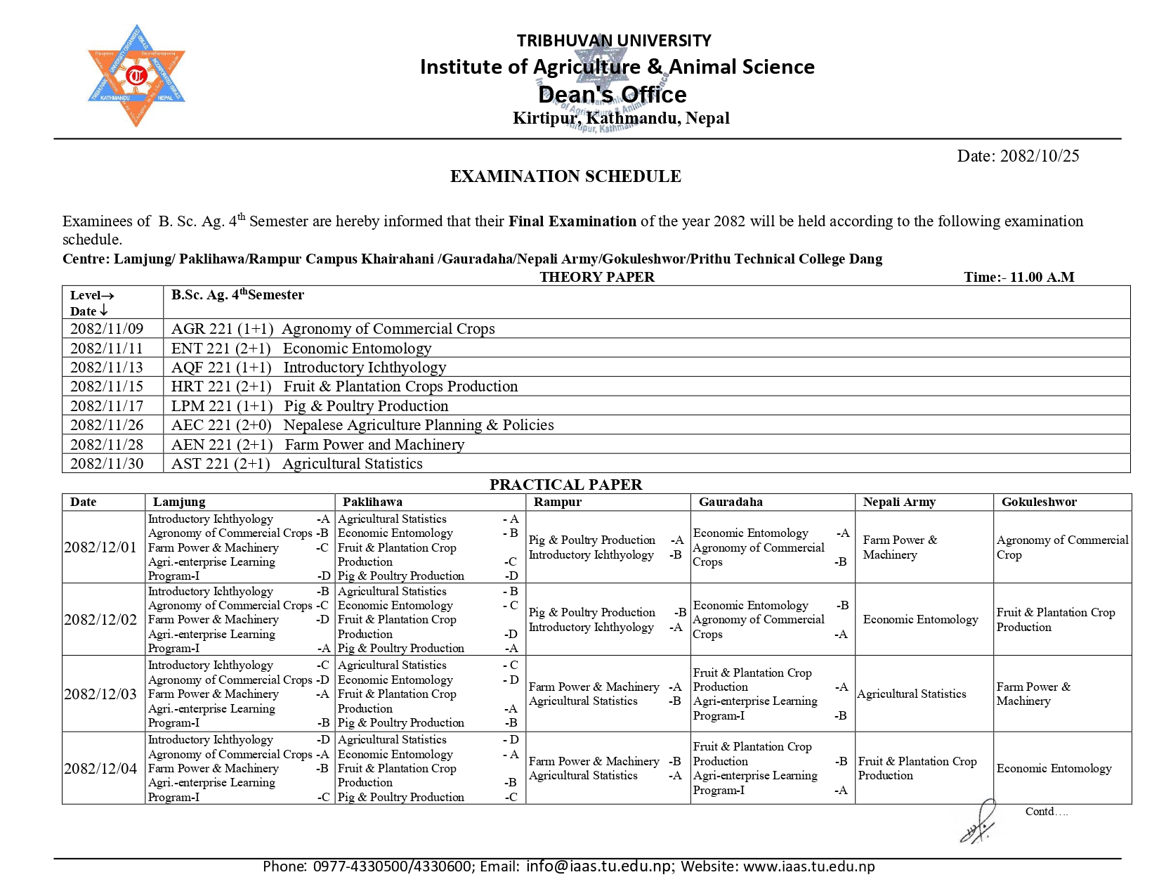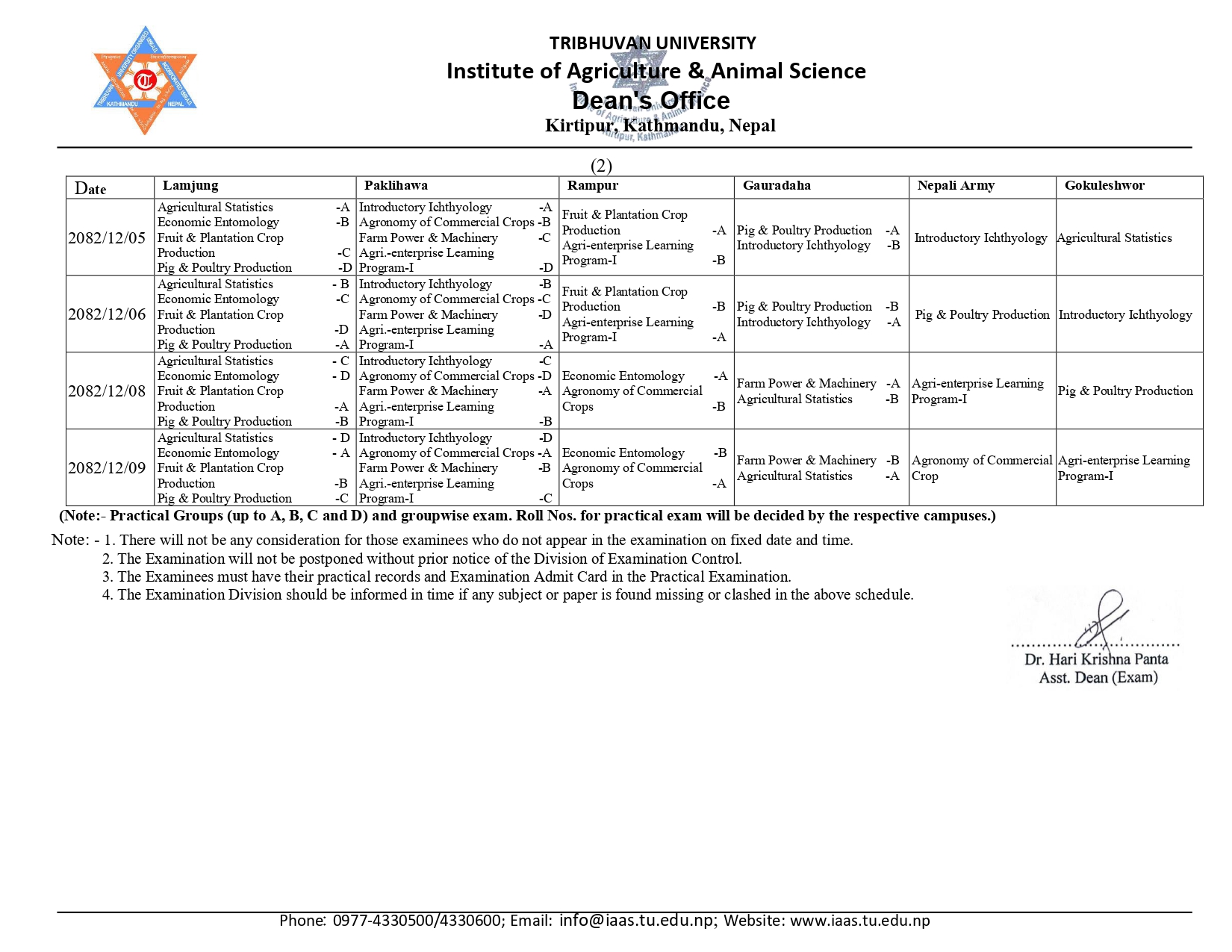 वि.एस्सी. कृषि चौथो र छैठौ सेमेष्टर नियमित परीक्षा...