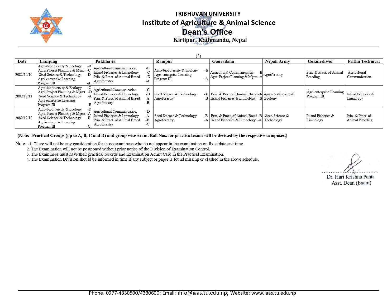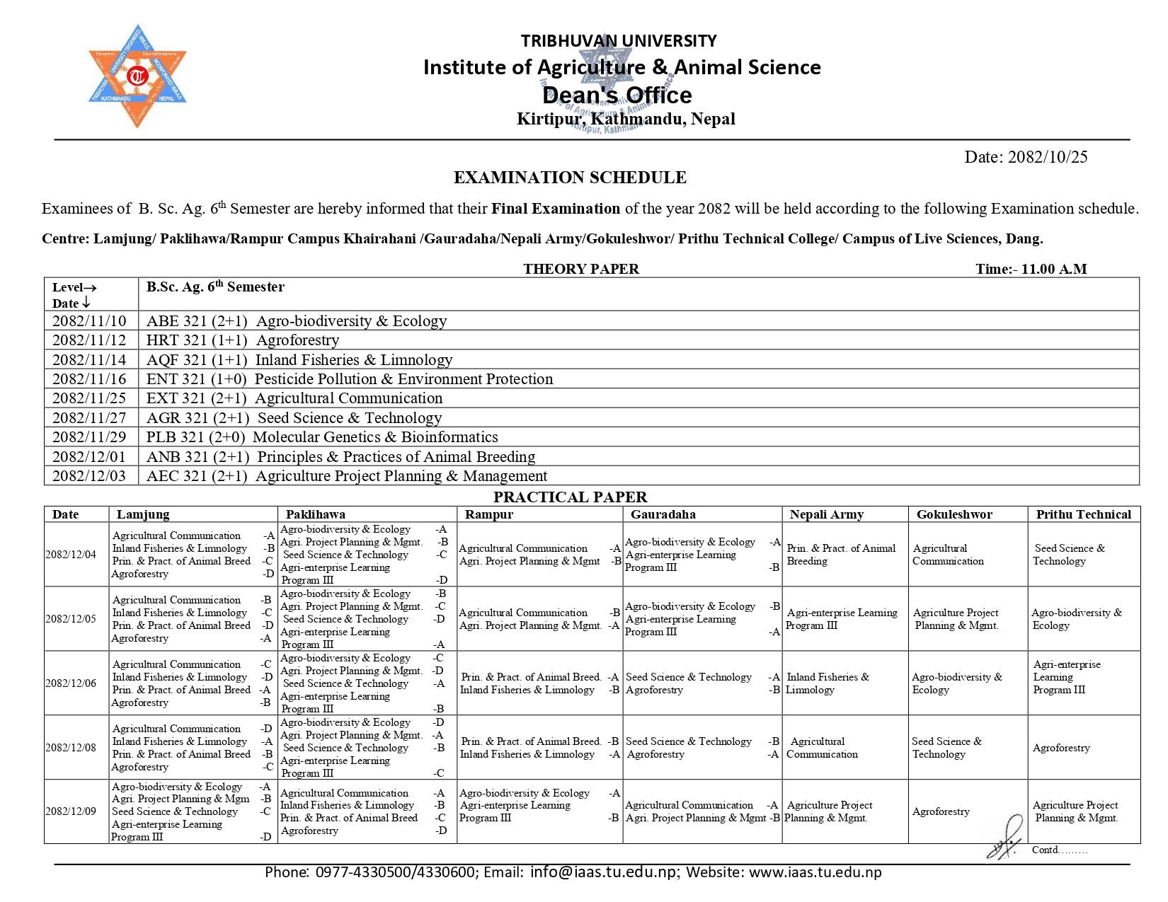 वि.एस्सी. कृषि चौथो र छैठौ सेमेष्टर नियमित परीक्षा...