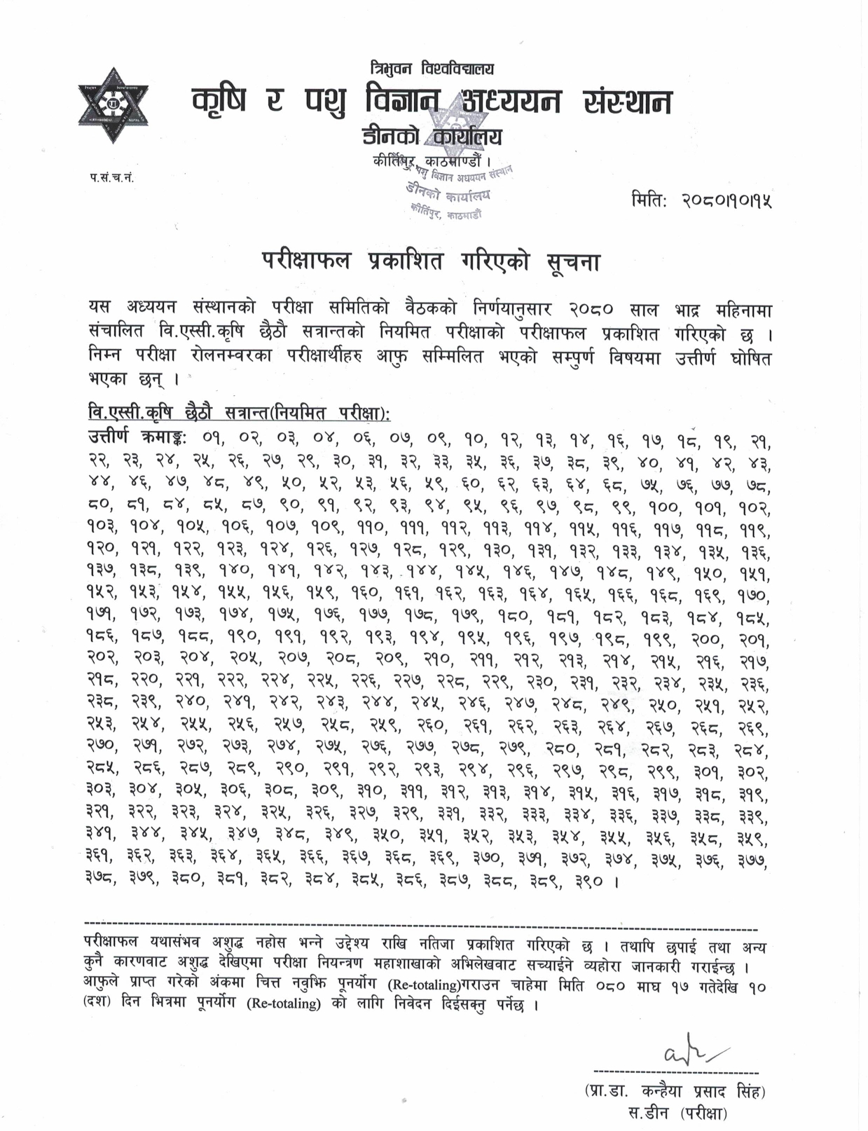 वि.एस्सी. कृषि चौथो र छैठौ सेमेष्टर नियमित परीक्षा...