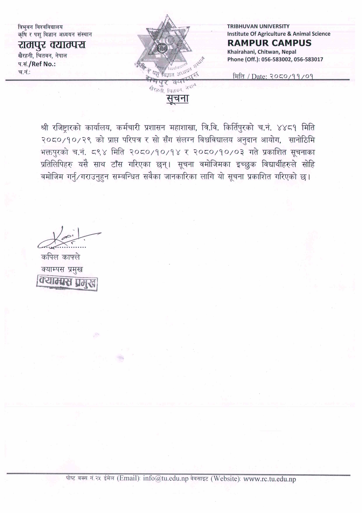 सहायक क्याम्पस प्रमुख पदका लागि आवेदन आह्वान सम्बन...