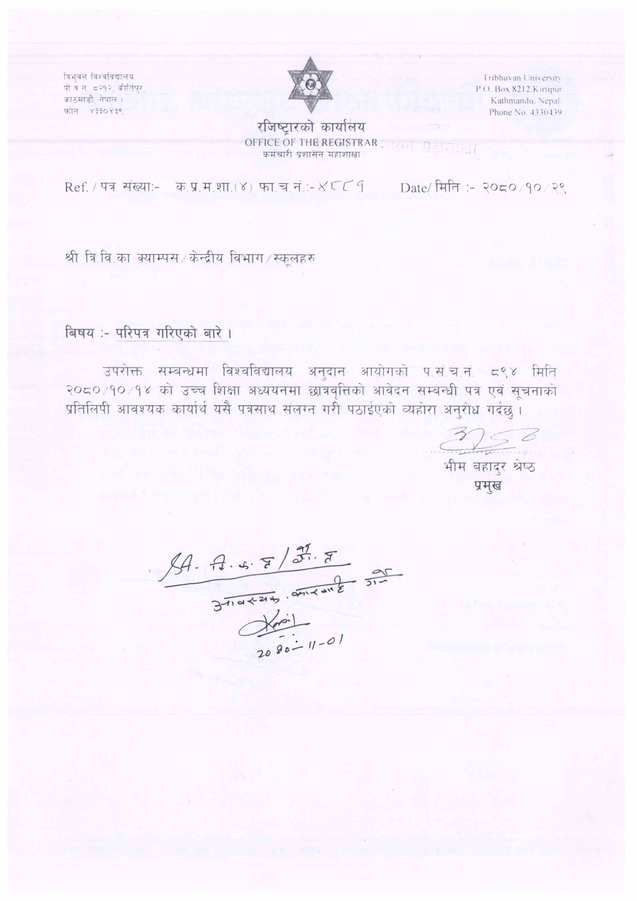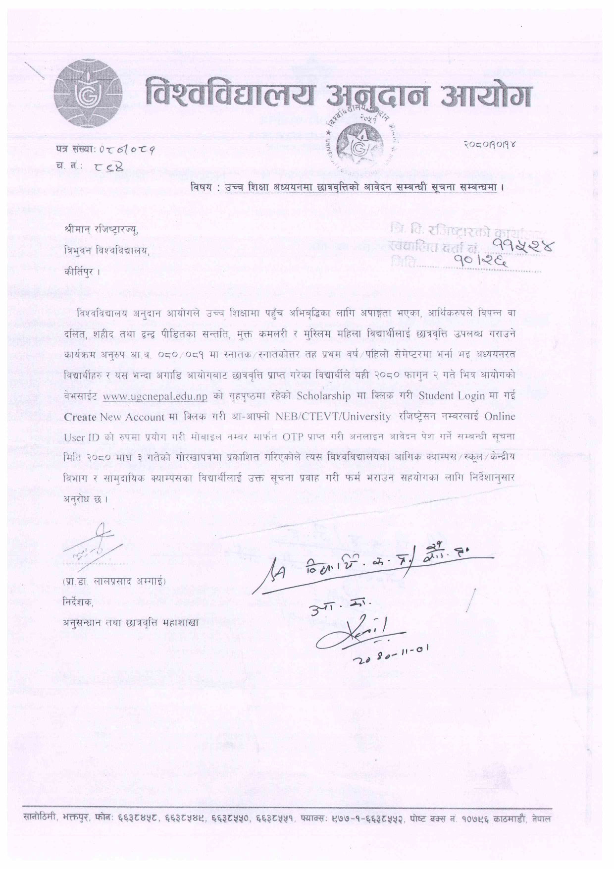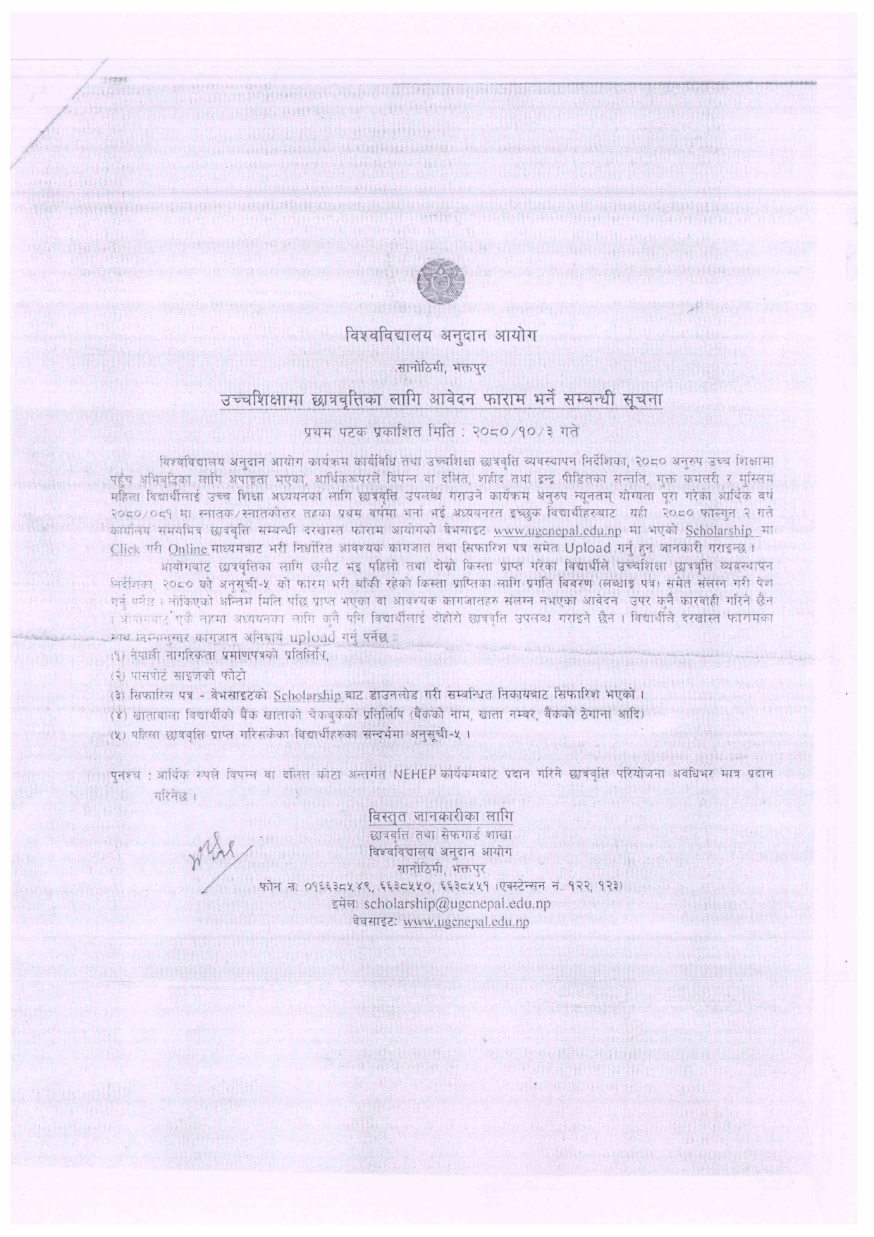 उच्चशिक्षामा छात्रवृत्तिका लागि आवेदन फारम भर्ने सम्बन्धी सूचना