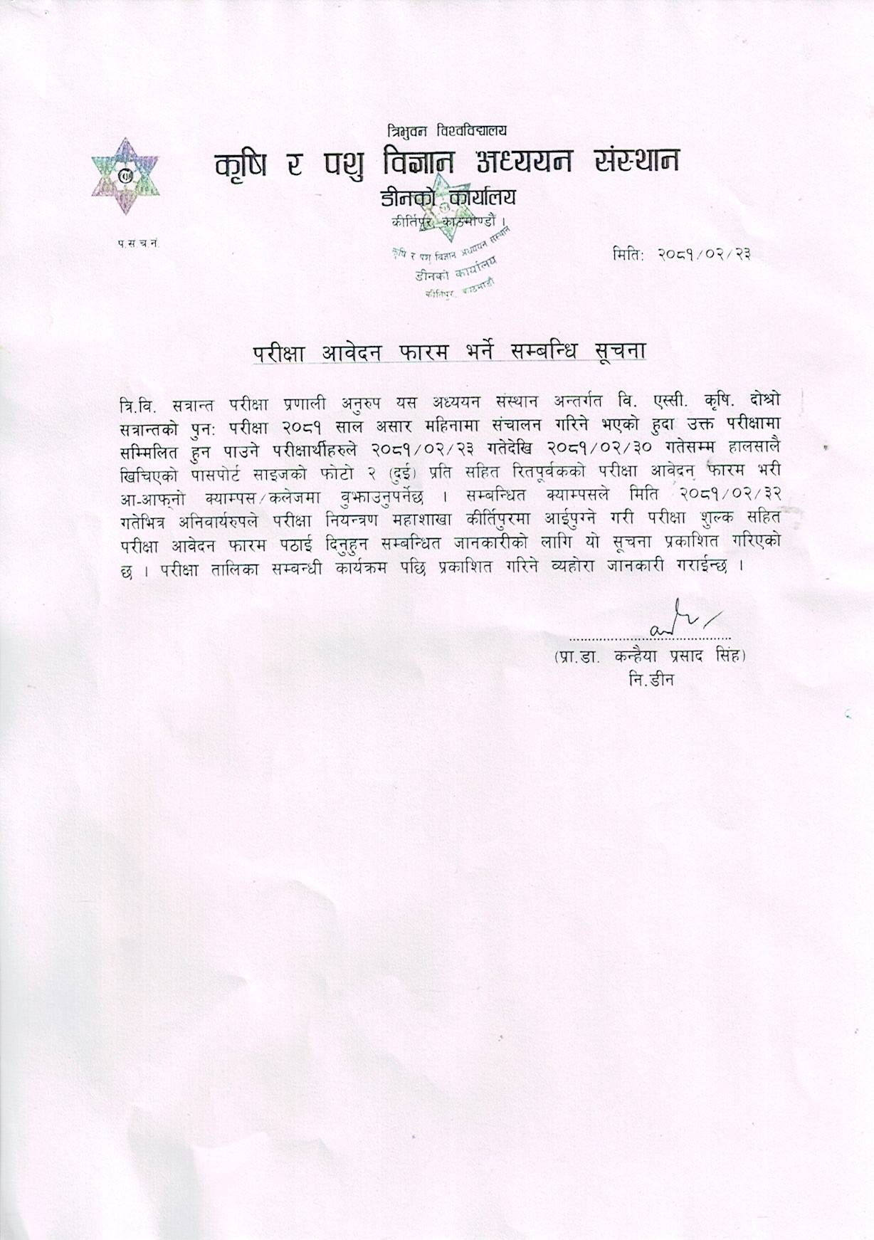 वि.एस्सी. कृषि चौथो र छैठौ सेमेष्टर नियमित परीक्षा...