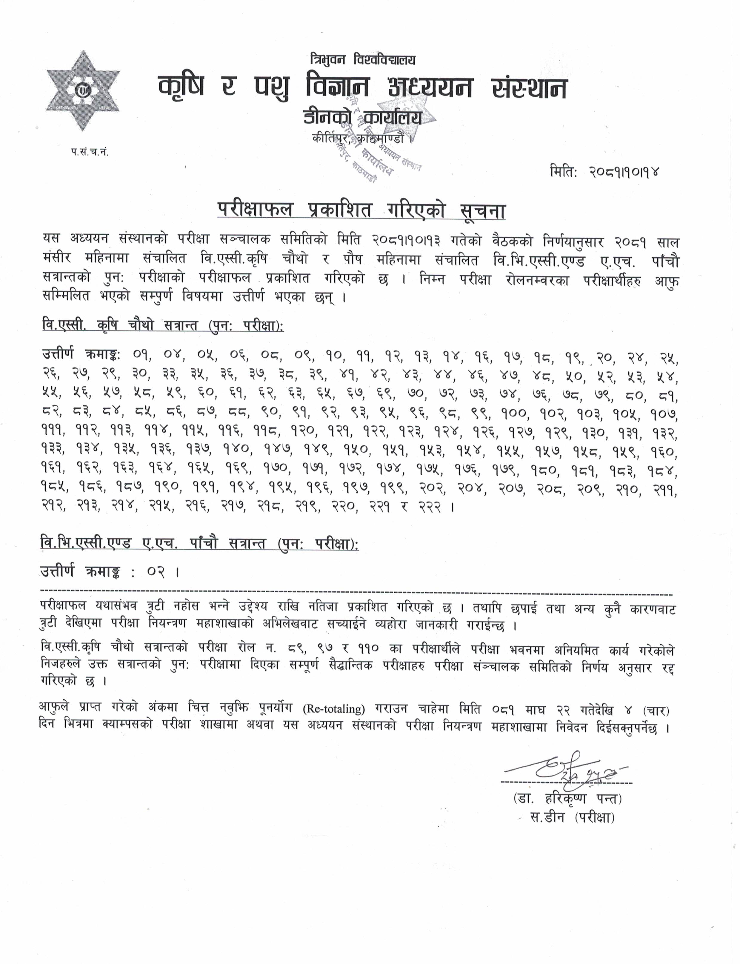 वि.एस्सी. कृषि चौथो र छैठौ सेमेष्टर नियमित परीक्षा...