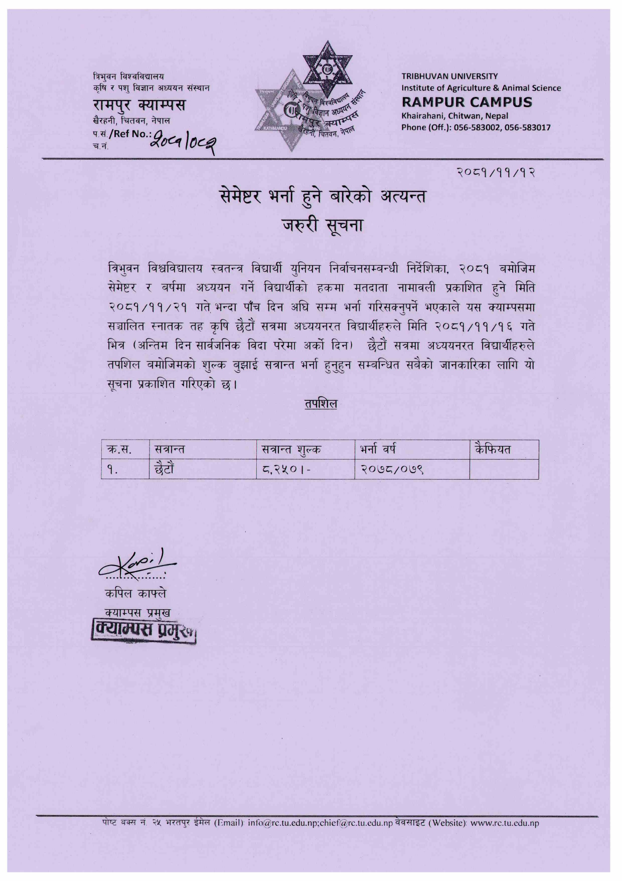 सेमेष्टर भर्ना हुने बारेको अत्यन्त जरुरी सूचना