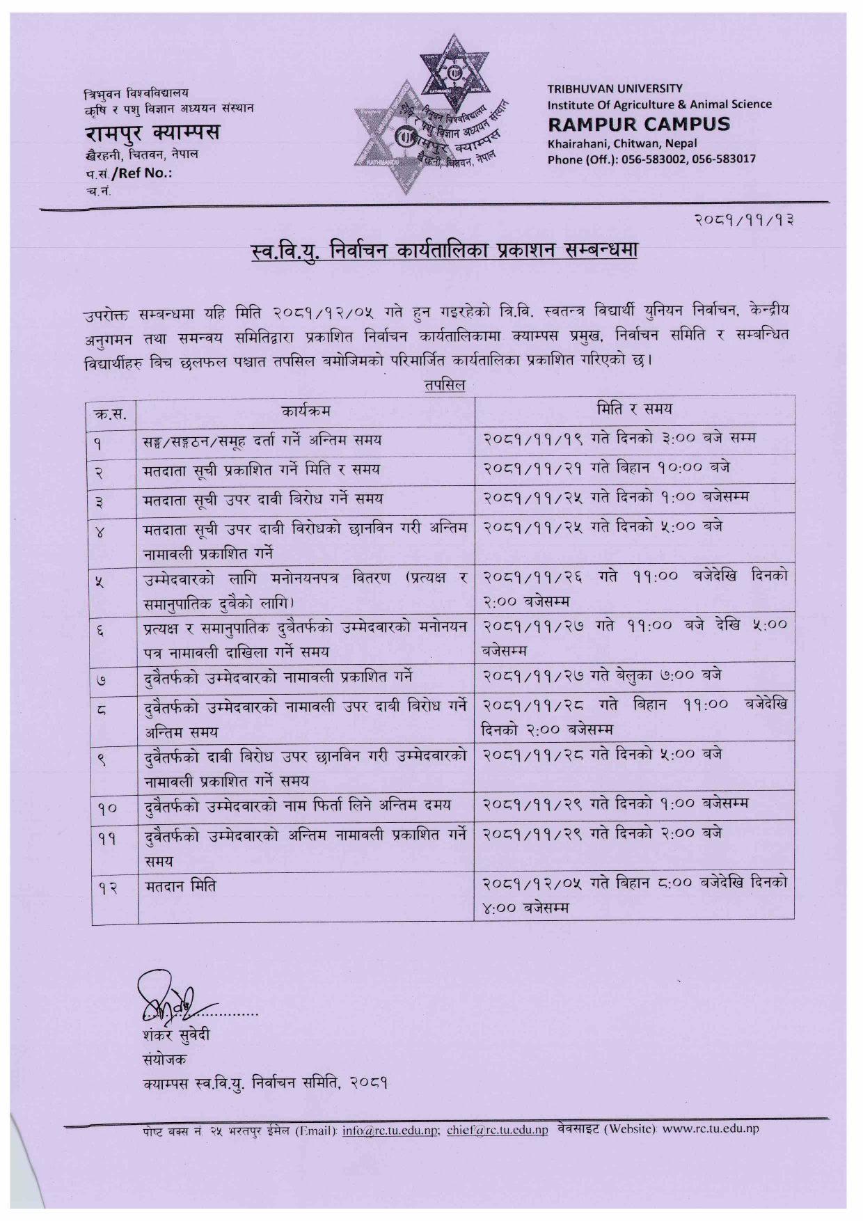 स्व.वि.यु. निर्वाचन कार्यतालिका प्रकाशन सम्बन्धमा