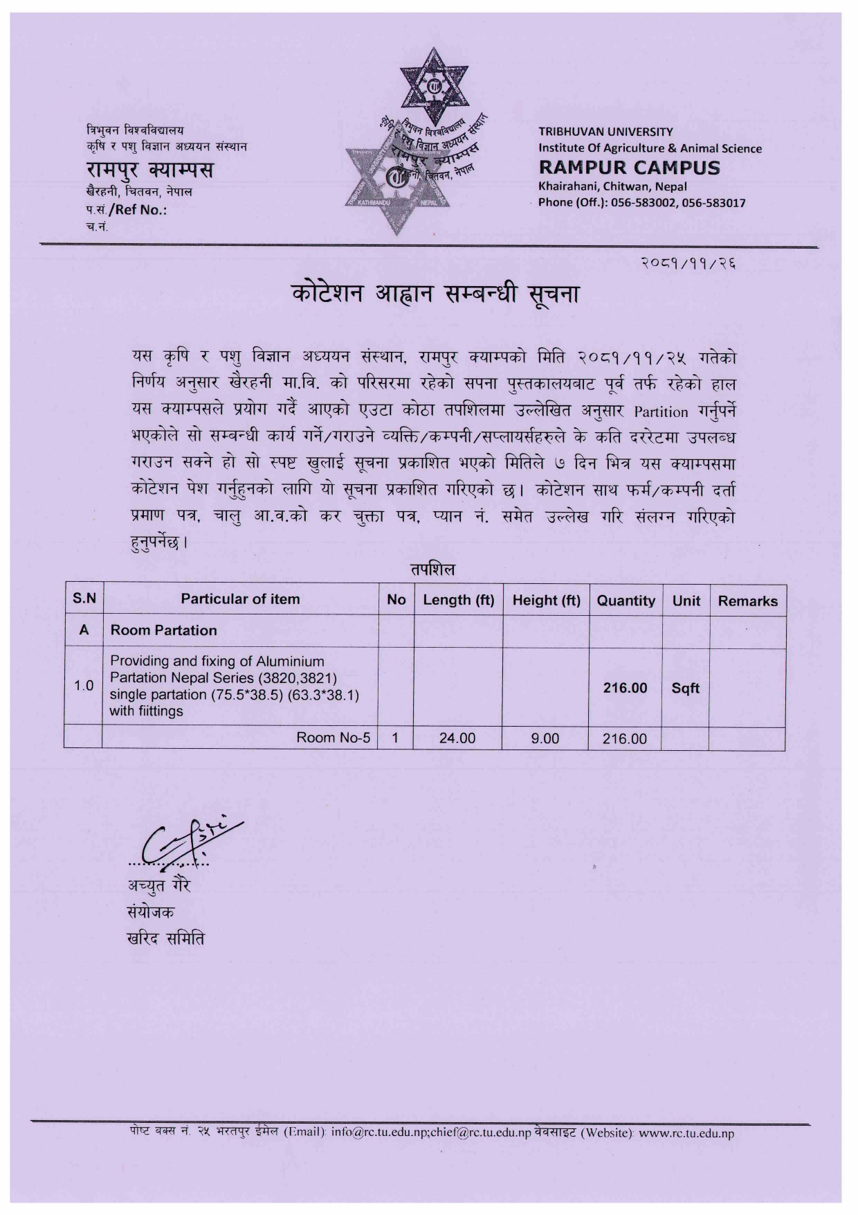 कोटेशन आह्वान सम्बन्धि सूचना