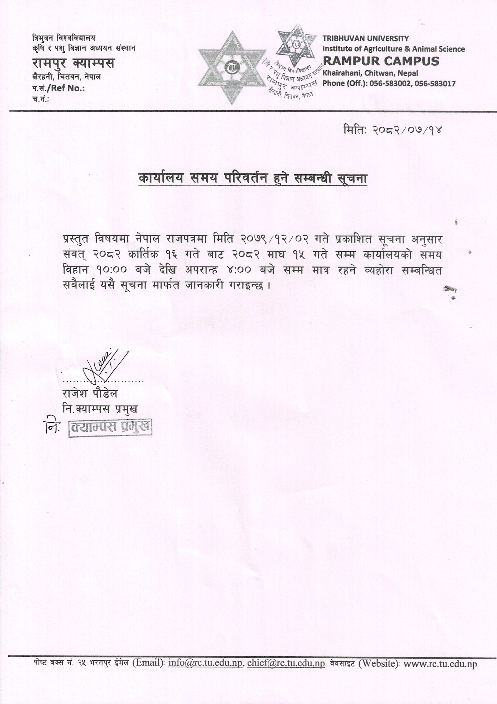 कार्यालय समय परिवर्तन हुने सम्बन्धी सूचना