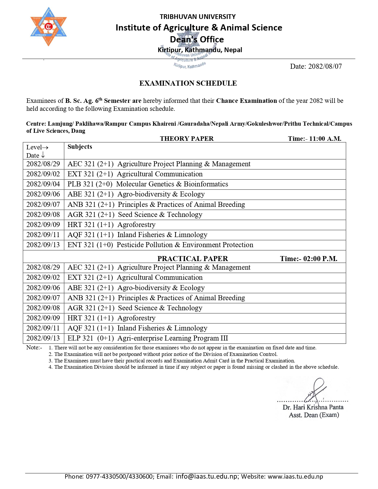 वि.एस्सी. कृषि चौथो र छैठौ सेमेष्टर नियमित परीक्षा...
